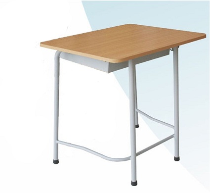 Bàn ngồi rời ghế, không điều chỉnh chiều cao mặt bàn. Chân đế tôn dập, chân đứng Oval 32×62, khung đỡ mặt ống 20×40, ngăn bàn tôn. Khung và ngăn bàn sơn tĩnh điện màu HP05. Mặt bàn gỗ công nghiệp dày 15mm