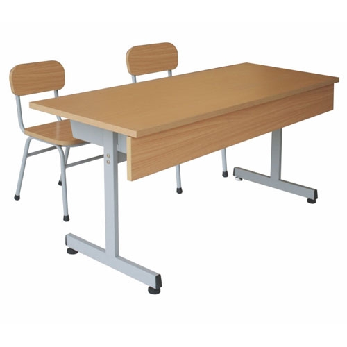 Bàn ngồi rời ghế, không điều chỉnh chiều cao mặt bàn. Chân đế tôn dập, chân đứng Oval 32×62, khung đỡ mặt ống 20×40, ngăn bàn tôn. Khung và ngăn bàn sơn tĩnh điện màu HP05. Mặt bàn gỗ công nghiệp dày 15mm